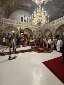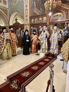 Κατά την κυριώνυμο ημέρα της εορτής, ο Σεβασμιώτατος Μητροπολίτης Λεοντοπόλεως κ. Γαβριήλ χοροστάτησε στον Όρθρο και προεξήρχε της Θείας Λειτουργίας, συνιερουργούντος του Σεβασμιωτάτου Μητροπολίτου Θήρας, Αμοργού και Νήσων κ. Αμφιλοχίου.
