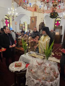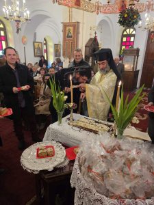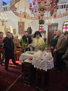 Από νωρίς το πρωί τελέστηκαν ο Όρθρος και η πανηγυρική Θεία Λειτουργία του Αγίου Βασιλείου, μέσα σε κλίμα βαθιάς πνευματικότητας και ευχαριστίας προς τον Θεό για την αρχή του νέου έτους. Πλήθος πιστών προσήλθε στον ναό για να προσευχηθεί και να λάβει την ευλογία του Αγίου Βασιλείου, ζητώντας υγεία, ειρήνη και φώτιση για το 2026.